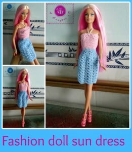 Here is a summer party dress for your child’s doll. The pretty shells will make any girl glad to own this for her fashion doll.