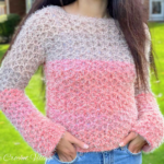 If you love wavy colors, then you will enjoy making and wearing this crochet sweater. It features three beautiful colors to complement any outfit.