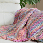Available in all sizes, this pretty striped blanket pattern is a go-to pattern when making gifts for friends and family. The colors are easy to customize.