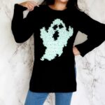 This crochet ghost sweater is a great way to have fun at the office or to keep cozy while taking the kids out.